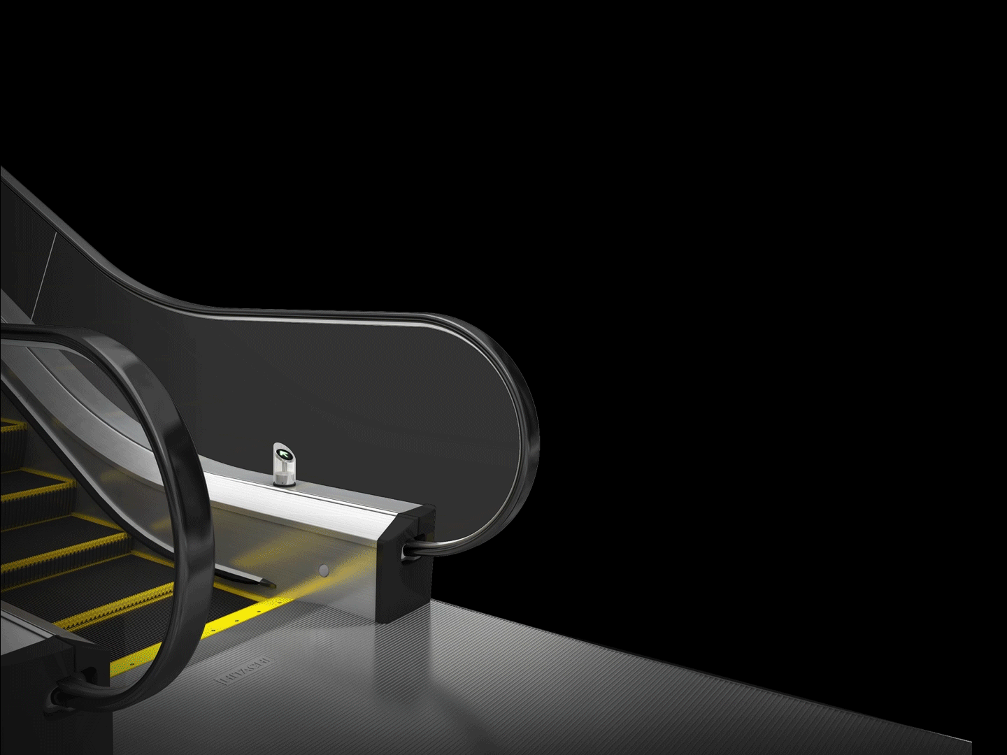我們選擇易判斷的邊界顏色,即使在較暗的室內(nèi)燈光下都可以容易地判斷扶梯的運行狀態(tài),在乘客的無意識的使用過程中,發(fā)揮著視覺安全提示的作用。